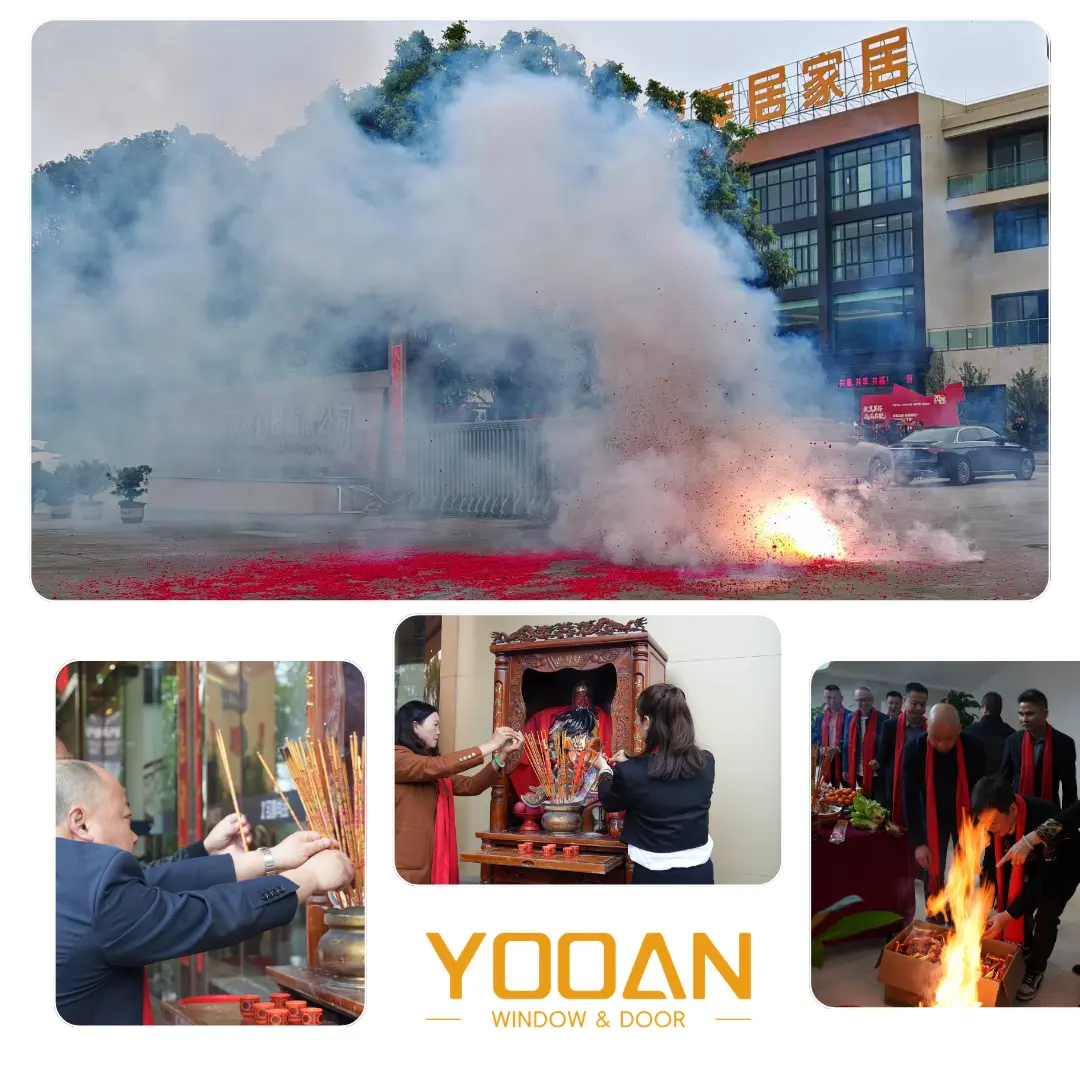 As the saying goes, "When firecrackers ring, golden wealth arrives." The deafening sound of firecrackers implies "success at the first attempt" and "endless wealth." This thunderous announcement indicates that YOOAN Windows & Doors will surely break through the situation and take the lead in the new year!